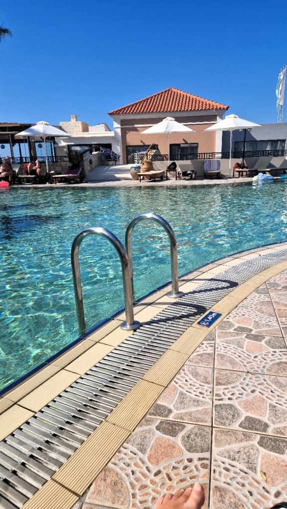 God morgon alla. Igår blev det inget inlägg och nu skriver jag väldigt tidigt. Dagarna går i ett här och har inte hänt så mycket. Tillbringar en hel del tid i poolen och runt baren. Det blir så naturligt då vårt rum är rätt nära. Vi har sagt i flera dagar att vi ska ta oss till stranden, men varenda gång backar vi. Jag tror det är vägen dit. Det är egentligen inte så långt, men backen. Den är inte rolig, speciellt inte då man är trött och det är varmt ute.