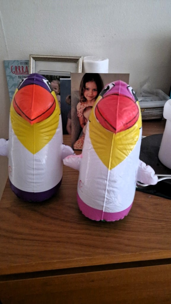 Vi brukar alltid köpa med oss något litet till barnbarnen. Inte något stort men en liten sak då vi är ute och reser. Hittade pingviner i olika storleken och köpte den minsta till de yngre barnen. De stora tjejerna fick ett armband med stenar och olika budskap. Passar framförallt nummer tre som bara älskar ”magiska” stenar. Tyckte ändå dom var fina.