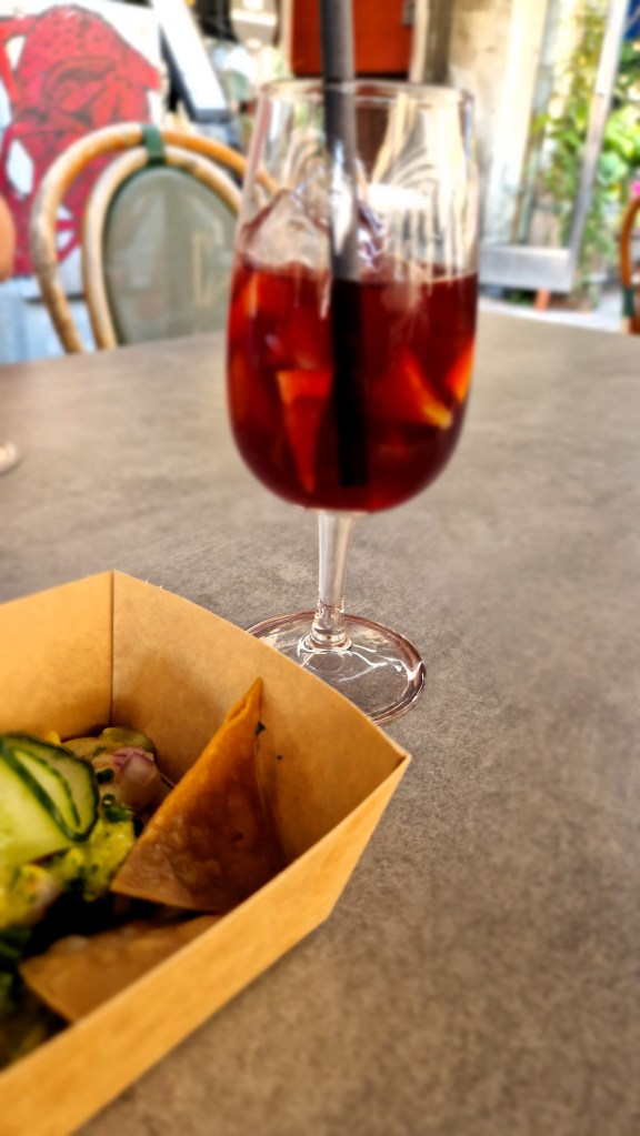 3e stoppet för oss blev puta madre. Vi hade höga förväntningar och jag har varit där innan och upplevt att det varit riktigt bra. Ska inte lägga det på personalen, men två sönderstressade personal, och väldigt trångt. Ceviche de camarones blev det till mat. Räkor, avokado, gurka med mera. Det var gott, men helt klart det stället som kom sist i vår rankning. Däremot var sangrian vi drack riktigt god.