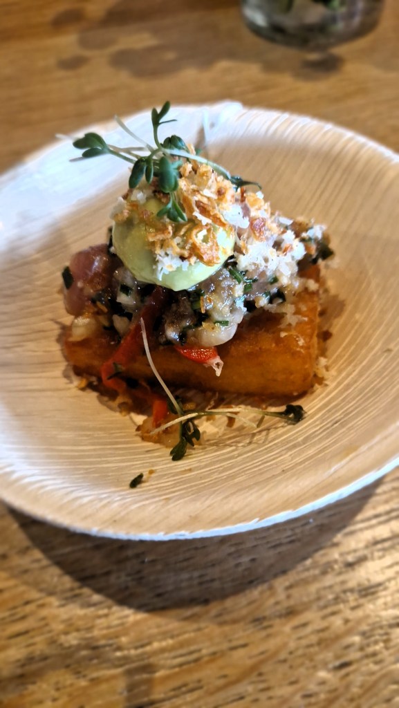 Hotellet vid stenpiren. Deras takbar är fantastiskt och har varit där vid flera gånger. Däremot aldrig på restaurangen. De hämtar sina influenser från det asiatiska köket, och i första hand Thailand. Vietnam och Kina. Även här hade vi höga förväntningar. Han i baren var supertrevlig och kan inte klaga på dom vid matutlämningen. Maten då. Återigen fantastiska smaker. vi serverades en riskaka med tonfisktartar och avokadokräm. Däremot kunde vi önska oss lite mer från hon som dukade av. Inte otrevlig, men kanske inte supertrevlig här. Kanske osäker? Vad vet jag. Oavsett, vi fick vad vi förväntade oss och det var vi nöjda med.