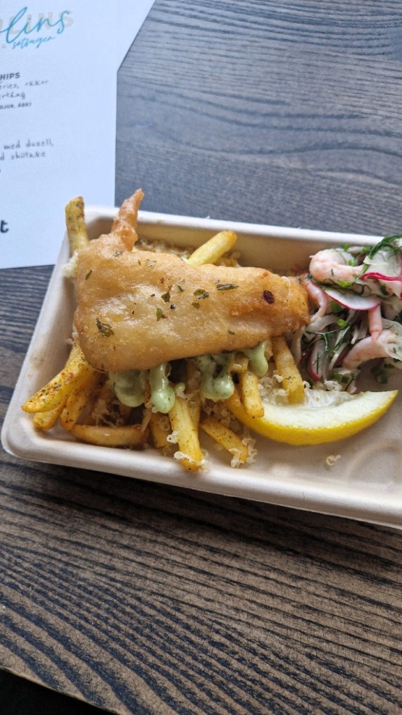 Dags för stoppet längst bort. Hotell draken och deras restaurang Heurlins. Vi lyckades gå in vid fel ingång men personalen var supertrevliga, och följde med för att visa oss rätt. Service kallas det visst. Återigen ett riktigt bra ställe och åt den absolut godaste fish and chipsen jag ätit i Sverige. Den som slog den var det vi åt på Irland, men det är väl ändå ett otroligt gott betyg. Personalen var så trevliga, ni vet på det där naturliga sättet, inte proffsigt utan mer genuint. Så nöjda då vi lämnade.