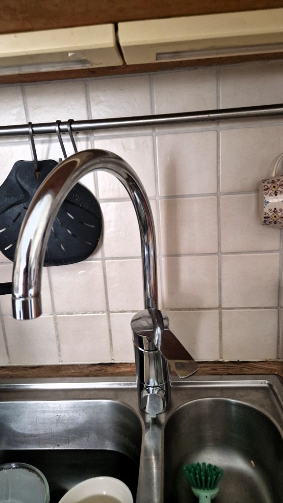 Vi har haft en kran som varit väldigt trög och idag tittade vi på en ny. Den behövdes helt klart bytas ut, men vi tar det då vi kommer tillbaka ihop med ljuset i badrummet. Min man är ju inte snabb då det kommer till sådant här. Han är ingen handyman utan byråkrat ut i fingerspetsarna ( Där har vi förklaringen till varför vi inte har hus) Han står och diskar och rätt som det är så skriker han till och kommer ut helt förstörd. Vattnet går inte att stänga av. I vanliga fall ska det vara en avstängsknapp under diskbänken men hon som bodde innan och renoverade var inte heller så händig har vi kommit på. Det var snyggt, men inte så bra gjort. Vattnet sprutar och han ringer förvaltaren. En kvart senare kommer någon som får stänga av vattnet, men det var inte det enklaste, Ner i källaren, in i grannens förråd och in i källaren i uppgången bredvid. Vi fick stänga av vattnet i hela huset. Dryga timmen senare kommer rörmokaren med en ny kran han köpte på vägen och två timmar senare var allt installerat och klart.