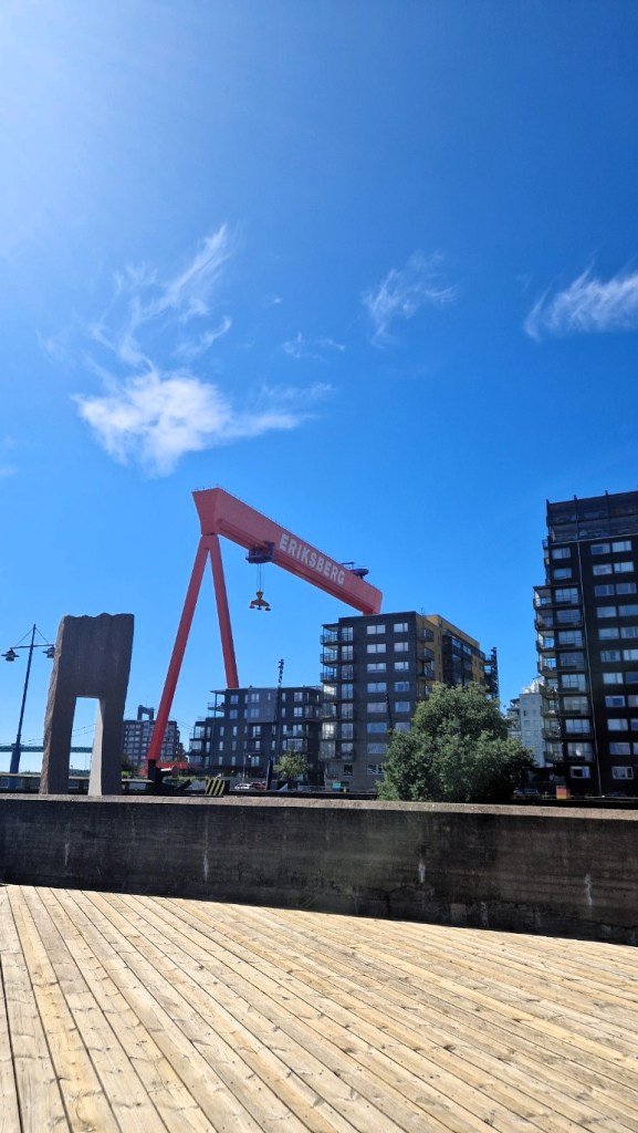 Vissa saker är kvar sen varven och just den här bockranen är kvar sen den tiden det var ett varv här. Till det har dom tagit vara på flera av de gamla byggnaderna som byggs om och har blivit bostäder bland annat. Är ni i Göteborg kan jag verkligen rekommendera att ta färjan över och strosa runt en stund. Den avgår även från just Eriksberg.