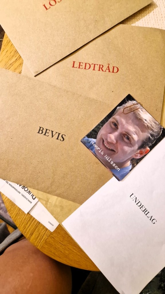Vi startade med supergod middag och då han jagar blev det naturligtvis vilt och det var så otroligt gott alltså. Därefter blev det dags att slå våra kloka huvuden ihop och lösa dagens fall. I den här gåtan är det en fördel att ha lite spetskompetens för att få till det och då vi öppnade ledtråden bekräftade vi ännu mer att vi hade rätt.