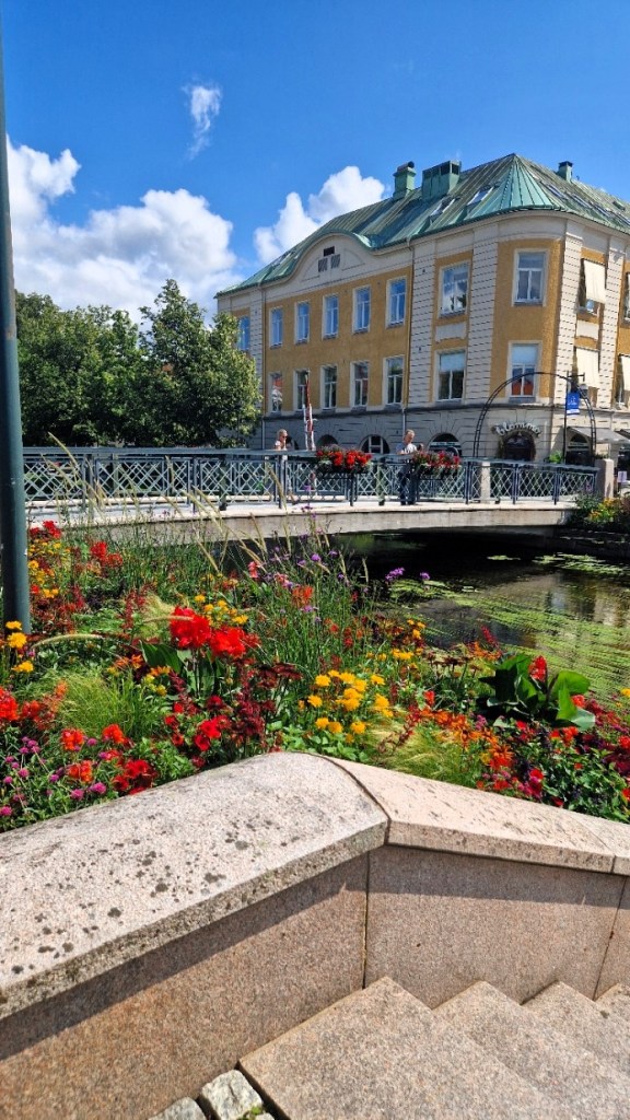 Strosa runt lite en stund i det vackra vädret innan vi avslutade med varsin glass på lejonet och björnen. Det är mycket vattendrag runt om Alingsås och som ni vet så älskar jag det. Behöver inte vara ett hav, även en fontän kan få mig att må bra.