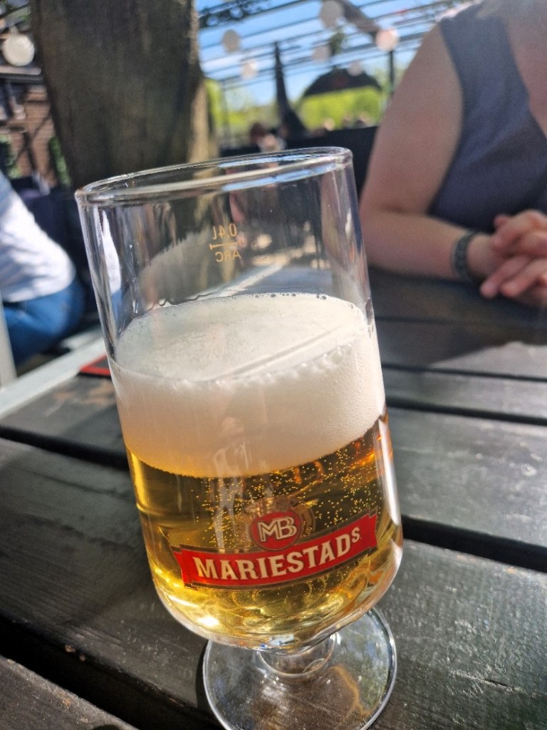 Köpte in ett par kannor öl och bara va ett par timmar. Njöt av solen och alla människor som letat sig ut. Det blev en helt fantastisk eftermiddag med goda vänner. De andra började bli lite hungriga och då maten inte är en höjdare där valde vi att gå vidare.