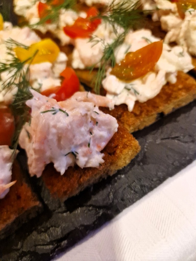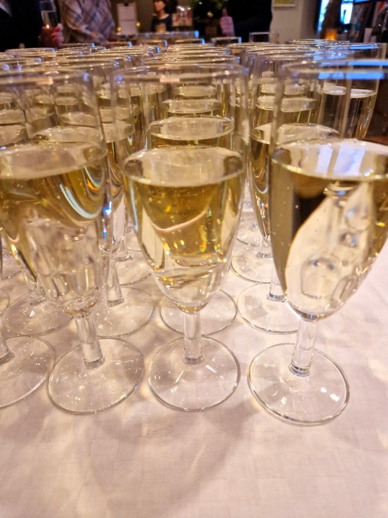 Innan middagen bjöds det på mingel, bubbel och snittar i foaljen. Så mycket folk och så trevligt. Ena snitten var så galet god också. friterad lök på något sätt och magisk god. Vi snodde nog åt oss någon extra, och det var inte bara vi som gjorde det.